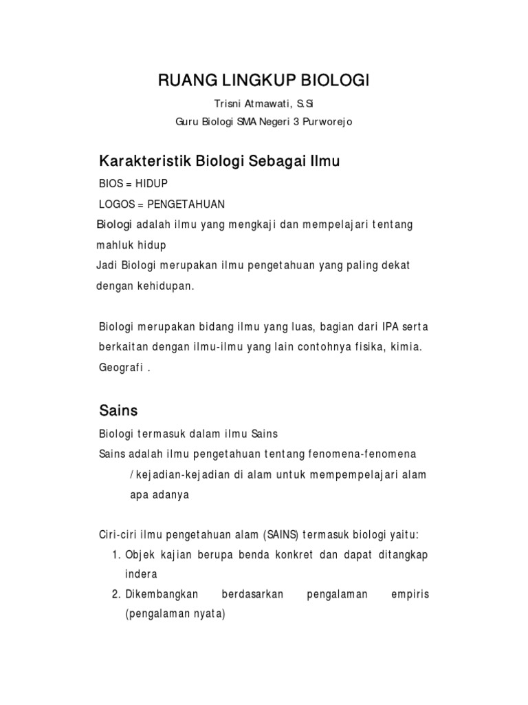 Blog ini berisi kumpulan soal-soal pembahasan materi Biologi SMA yang meliputi soal-soal Ujian Nasional dan soal masuk Perguruan Tinggi Assalamualaikum Halo adik-adik SMA Kelas X XI dan XII berikut adalah. Guru Biologi Materi Biologi Soal dan Pembahasan Biologi Terlengkap. Download Ruang Lingkup Biologi Ruang Guru PDF 700 MB - SamPDF SamPDF Video ini mendeskripsikan tentang ruang lingkup biologi meliputi objek kajian dan permasalahannya.