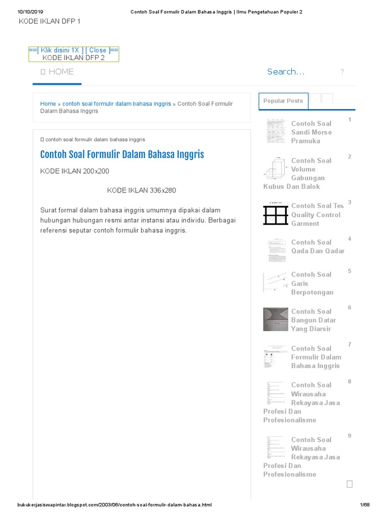 Contoh Soal Formulir Dalam Bahasa Inggris Ilmu Pengetahuan Populer 2
