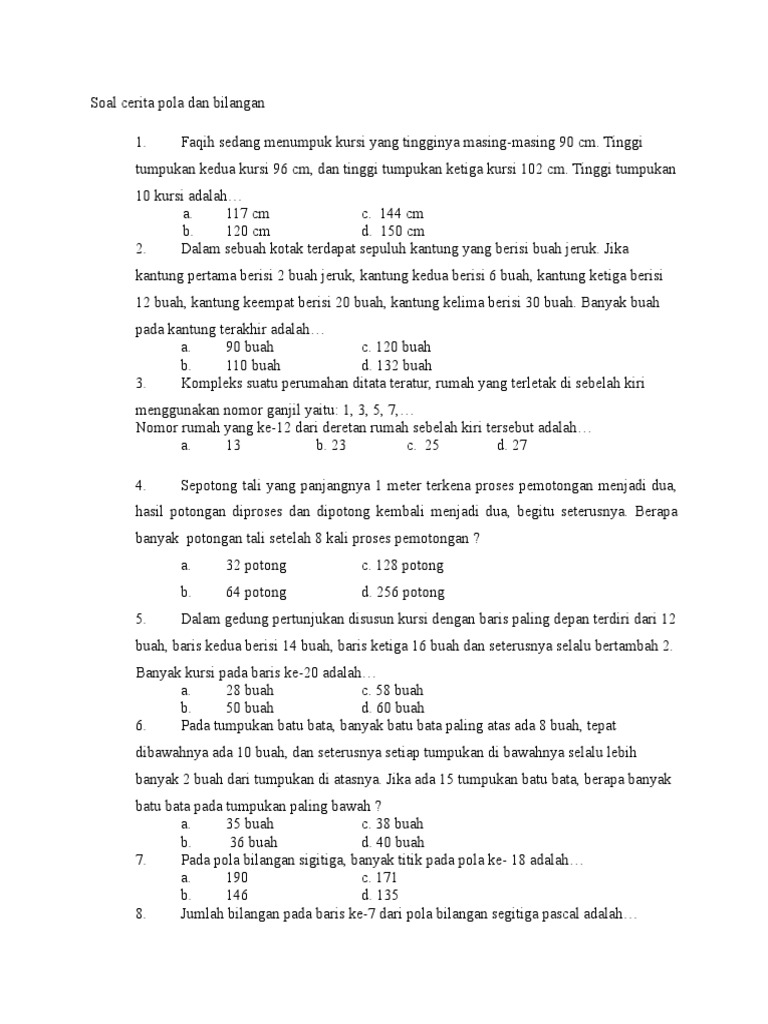 Contoh Soal Pola Bilangan Kelas 8 Soal Soal
