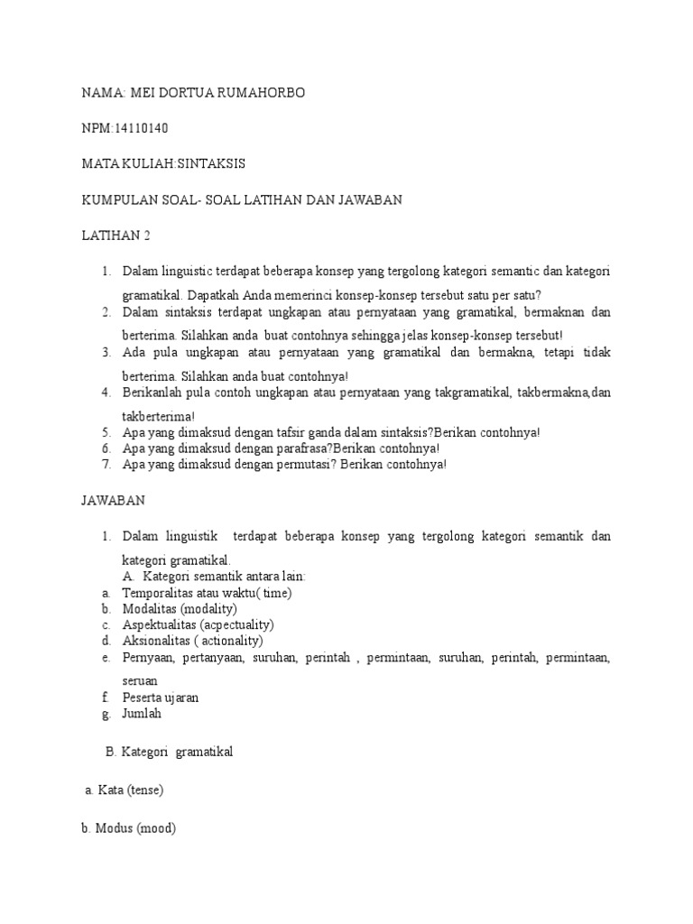 Latihan Soal Frasa Klausa Morfologi Kalimat