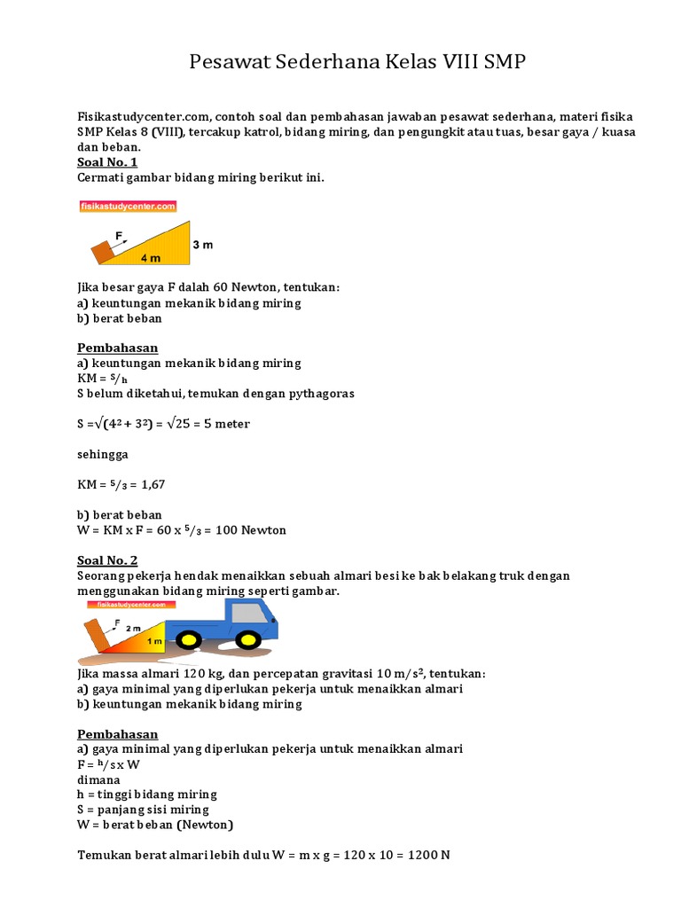 Soal Fisika Kelas 8 Usaha Dan Pesawat Sederhana Download File Guru