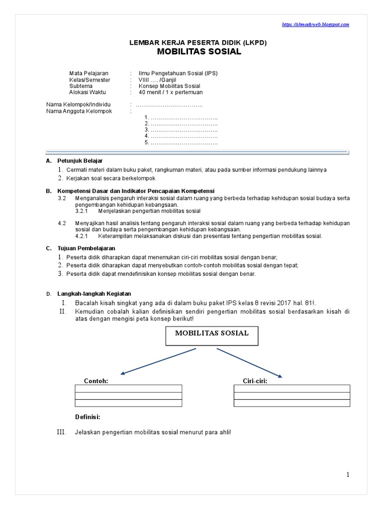 Lkpd Materi Konsep Mobilitas Sosial Ips Kelas 8
