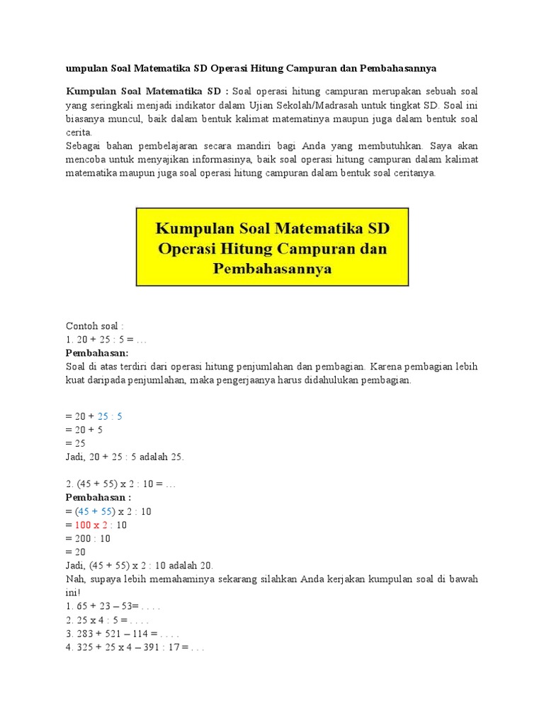 Latihan Soal Matematika Kelas 6 Sd