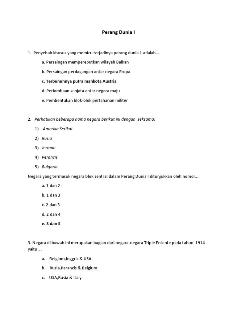 Pada perang Dunia I muncul dua aliansi besar yakni triple alliantie dan triplle entente. Italia dan Jerman c. Adapun materi yang terdapat dalam soal ini yaitu.