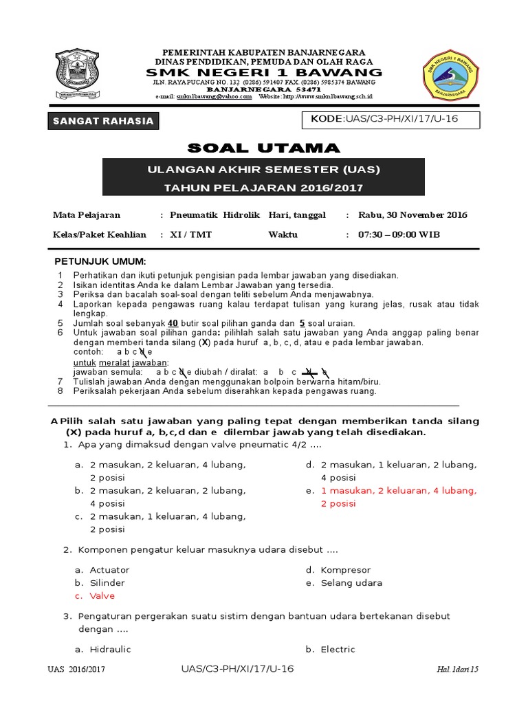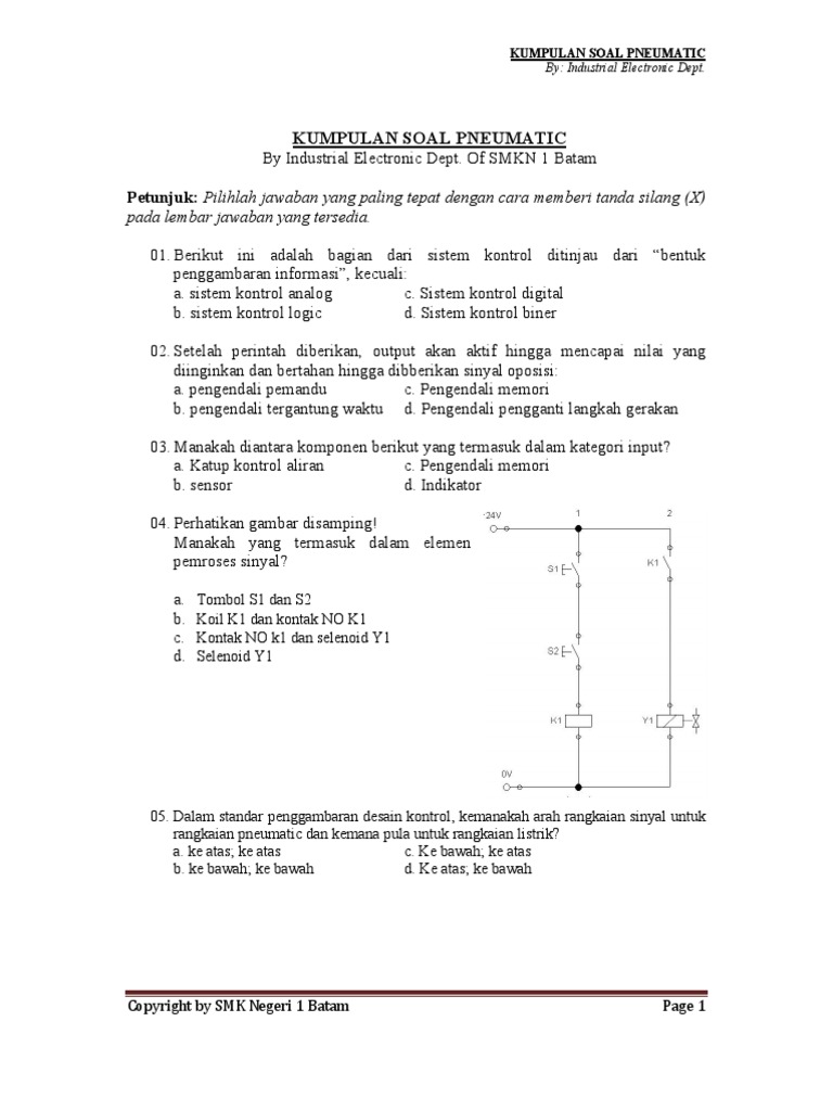 Latihan konsep-konsep matematika perlu dilaksanakan secara berkala. Soal uts kelas 5 semester 2 2019. Industrial Electronic DeptCopyright by SMK Negeri 1 Batam Page 1KUMPULAN SOAL PNEUMATICBy Industrial Electronic Dept.
