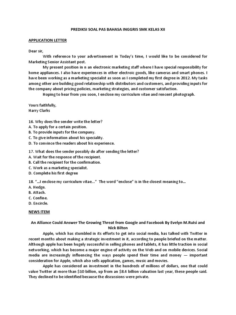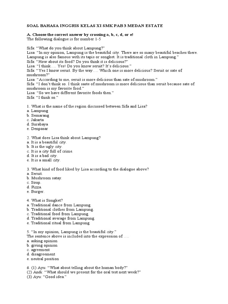 Soal Bahasa Inggris Kelas Xi Smk Pab 3 Medan Estate Motorcycle