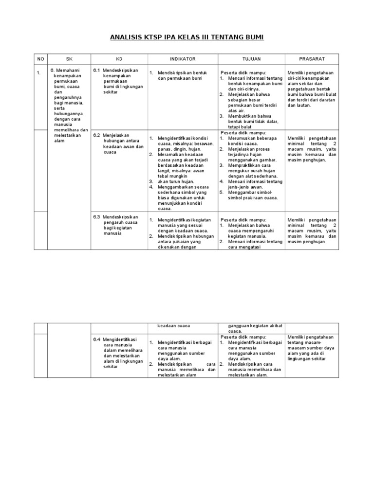 Analisis Ktsp Ipa Kelas Iii Tentang Bumi