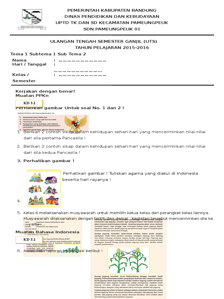 Kisi Kisi Soal Ulangan Harian Mata Pelajaran Pkn Kelas 6 Semester 1 Juragan Soal Ulangan Kurikulum 2013 Dan Ktsp Pendidikan Sekolah Dasar Sekolah